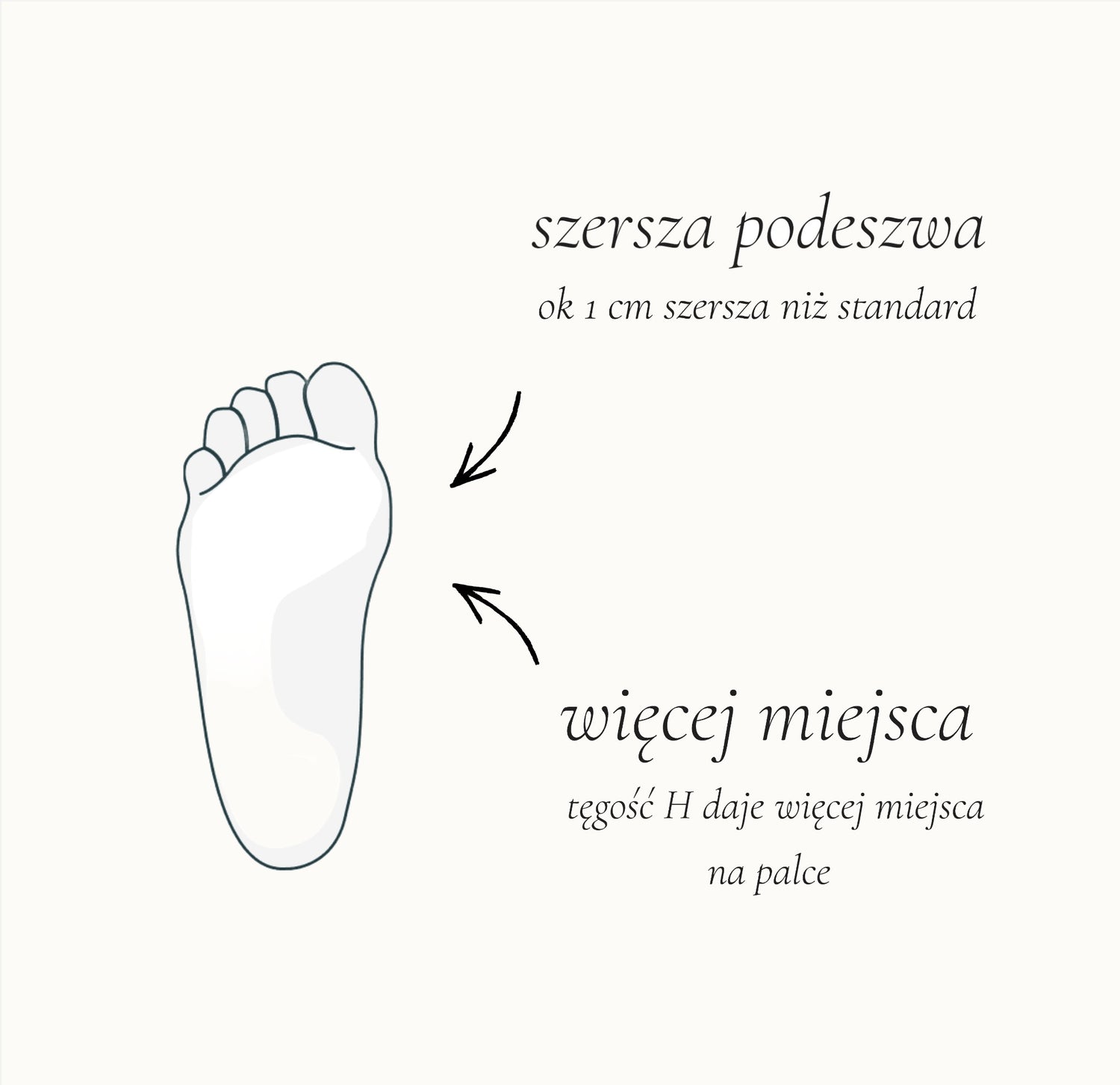 Wszystkie nasze klapki charakteryzują się szerszą podeszwą oraz większą tęgością (H) dając Ci więcej przestrzeni na palce!